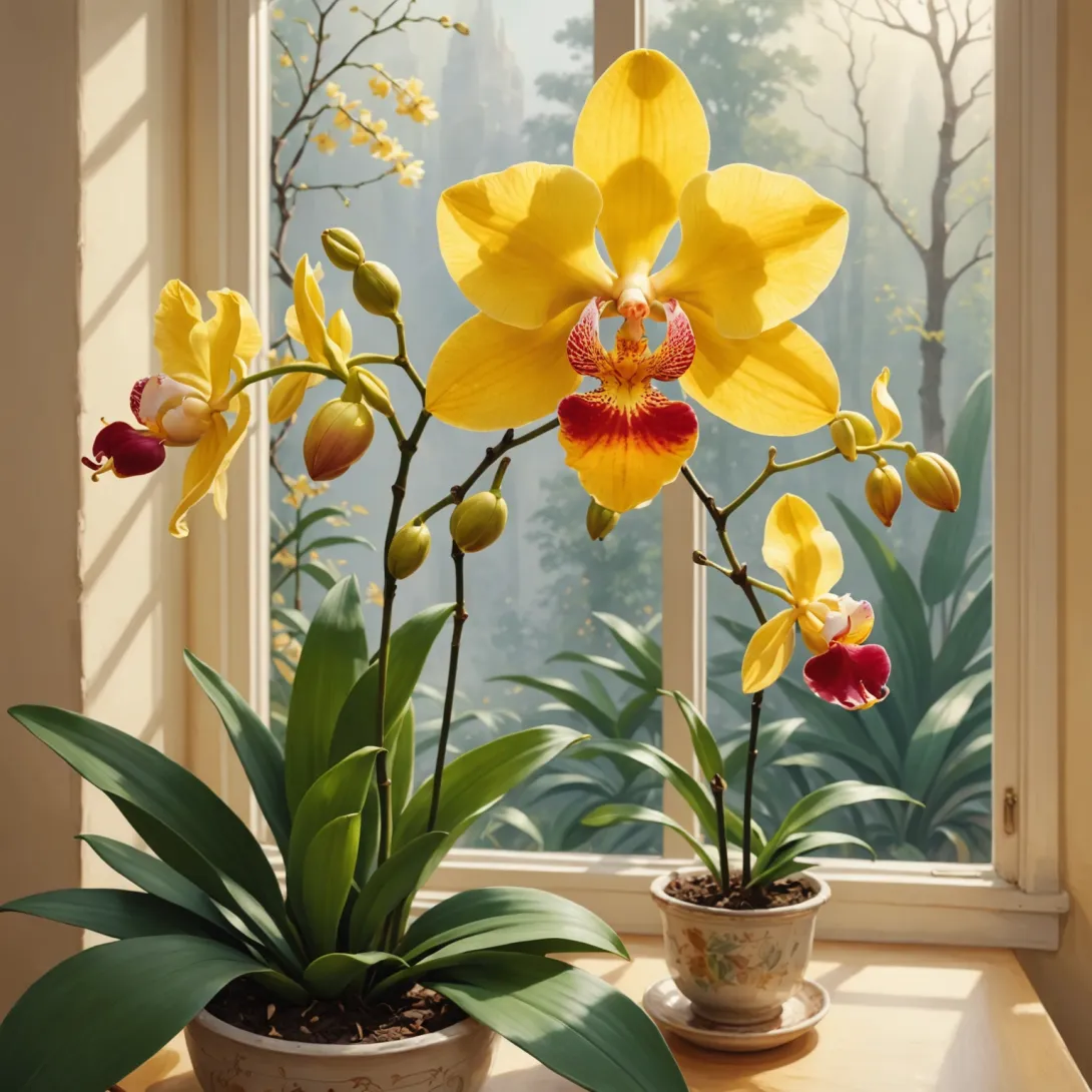 Желтая орхидея требует особого внимания в вопросах полива, освещения и правильного субстрата. Она предпочитает яркий, но рассеянный свет, а прямое солнце может привести к ожогам листьев.